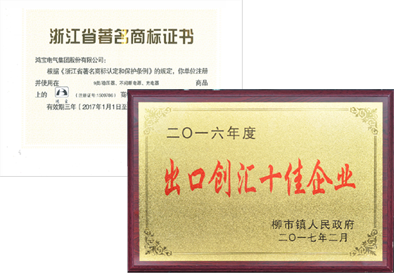“鴻寶”牌穩壓電源被評為“浙江省出口名牌產品"