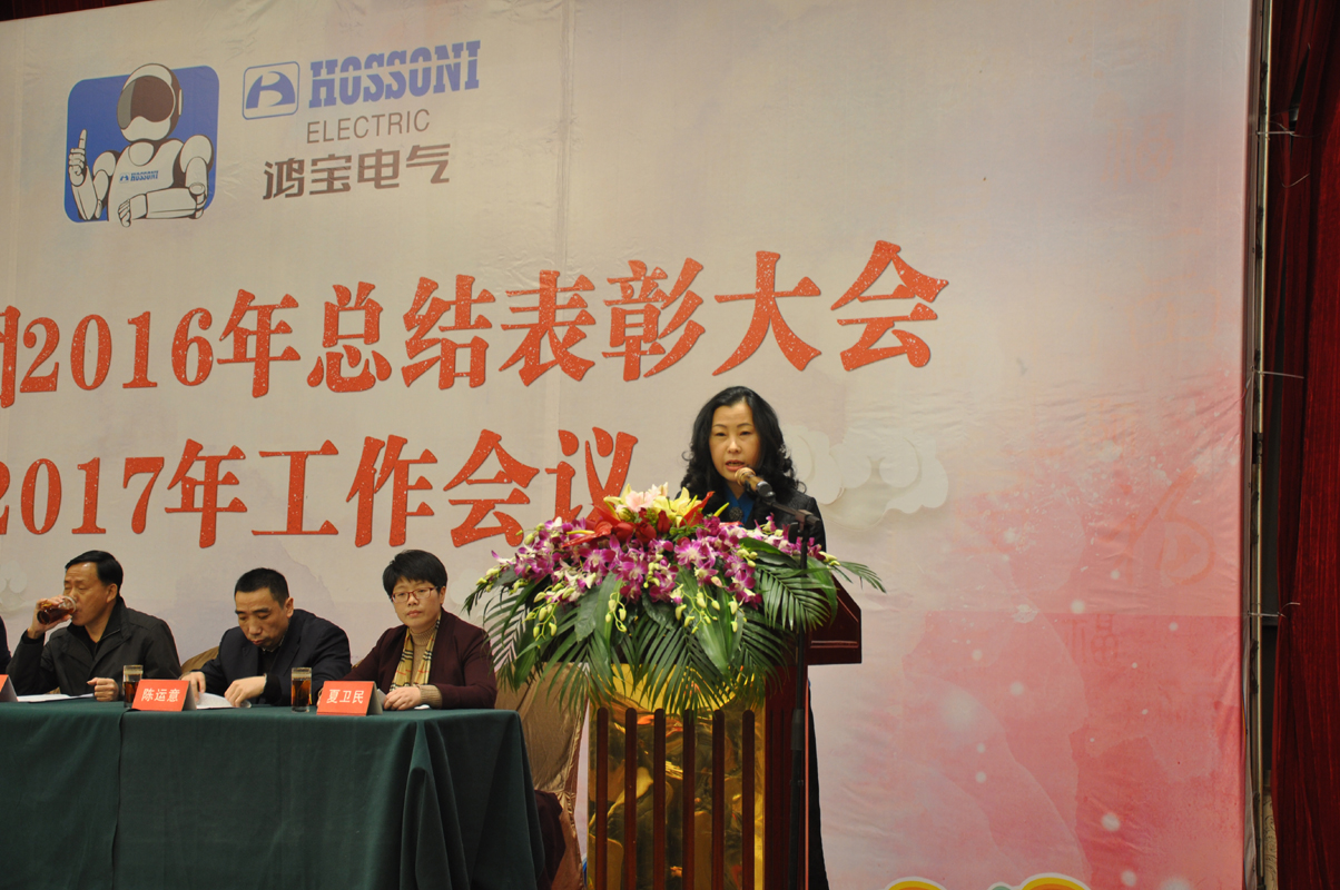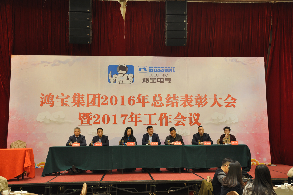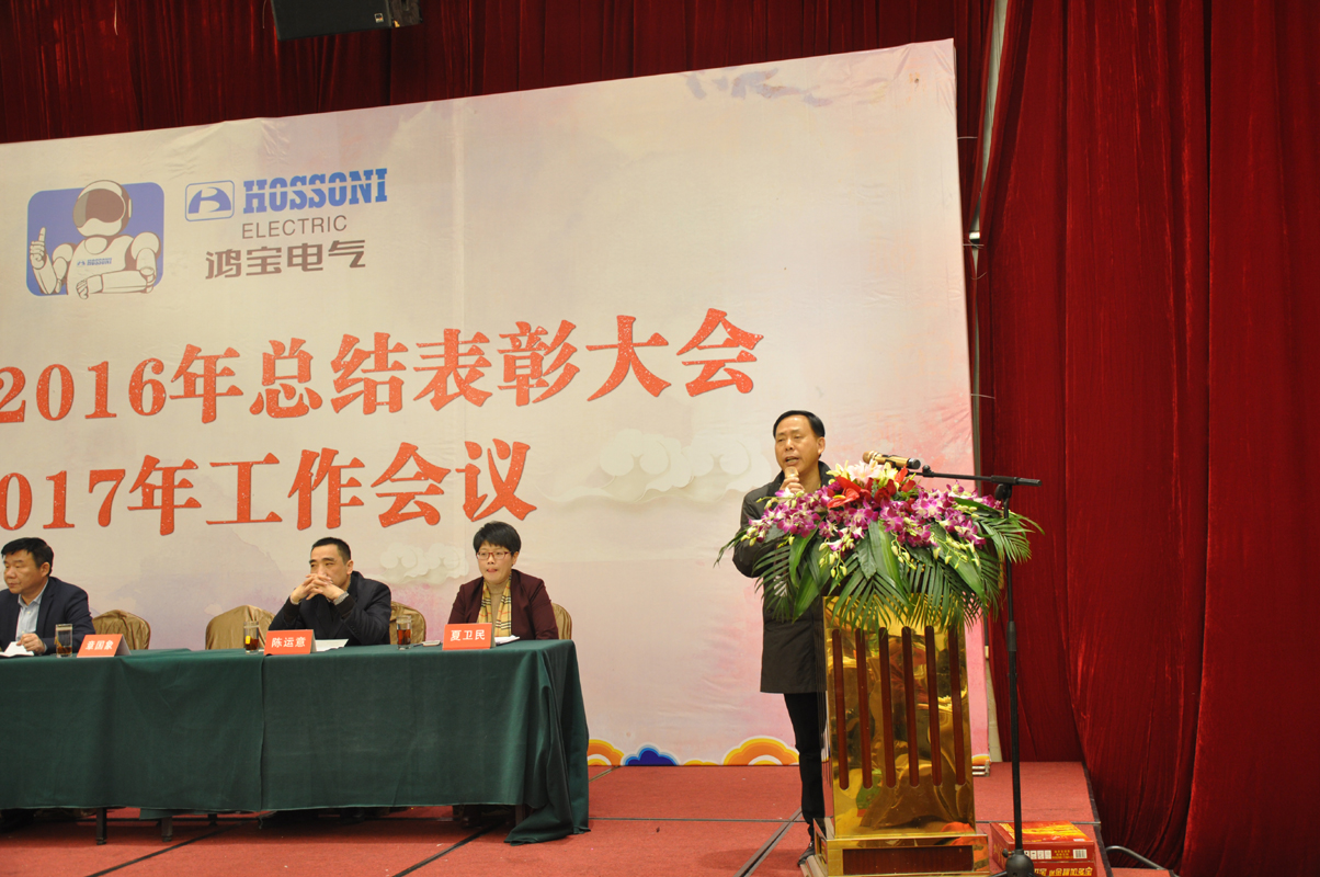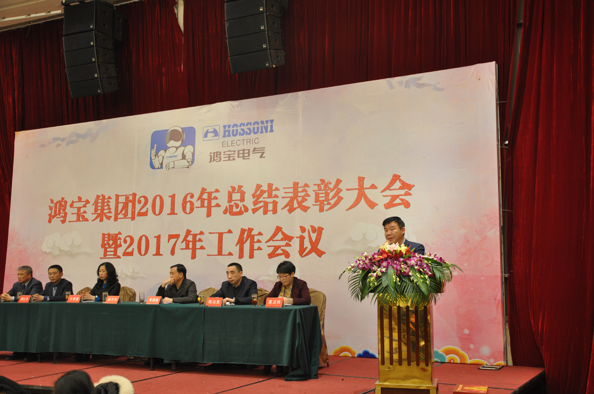 1月15日下午,鴻寶電氣集團在柳市新新雅假日大酒店貴賓樓A\B廳隆重召開2016年度總結表彰大會暨2017年工作會議。出席本次會議的領導有公司董事長、總經理、副總經理、監事長、各部門主管及公司員工300余人參加會議。會議由辦公室主任夏為民主持,會議在莊嚴神圣的國歌聲中拉開了序幕,公司監事長王麗慧為大會致詞,生產副總經理周紅升宣讀了表彰文件,公司隆重表彰了10位優秀員工,銷售部陳蓮蓮和黨員鄭永忠代表優秀員工和優秀黨員做了發言,技術副總經理陳運意就如何提升產品質量做了詳細的質量報告,總經理章國象認真客觀地總結了公司2016年的工作取得的成績和榮譽,并提出了2017年工作目標和計劃。會議上董事長胡萬良分別與生產副總經理周紅升、技術副總經理陳運意和銷售代表陳蓮蓮分別簽訂了安全生產管理協議、質量管理協議和銷售考核協議。最后董事長胡萬良作了重要講話,他對集團公司2016年的工作做了具體的評價,并指出2016年,我們面對世界經濟疲軟,國內外市場復雜嚴峻等不利因素,全體員工團結一致,不斷進取,逆勢而上,保持了企業平穩發展。同時,胡董提出:在新的一年, 全體員工要做到不因成績而驕傲,不因挫折而氣餒,我們要有同一個信念,目標一致,做到有目標、有計劃、有實施、有檢查、有監督、有結果,他對大會提出了七點意見和要求,他指出全體員工要以百折不撓的精神從團隊合作、提高生產效率、狠抓產品質量、全力開拓新市場等方面要求員工堅定信心,團結一致,攻堅克難,再創鴻寶新的輝煌。