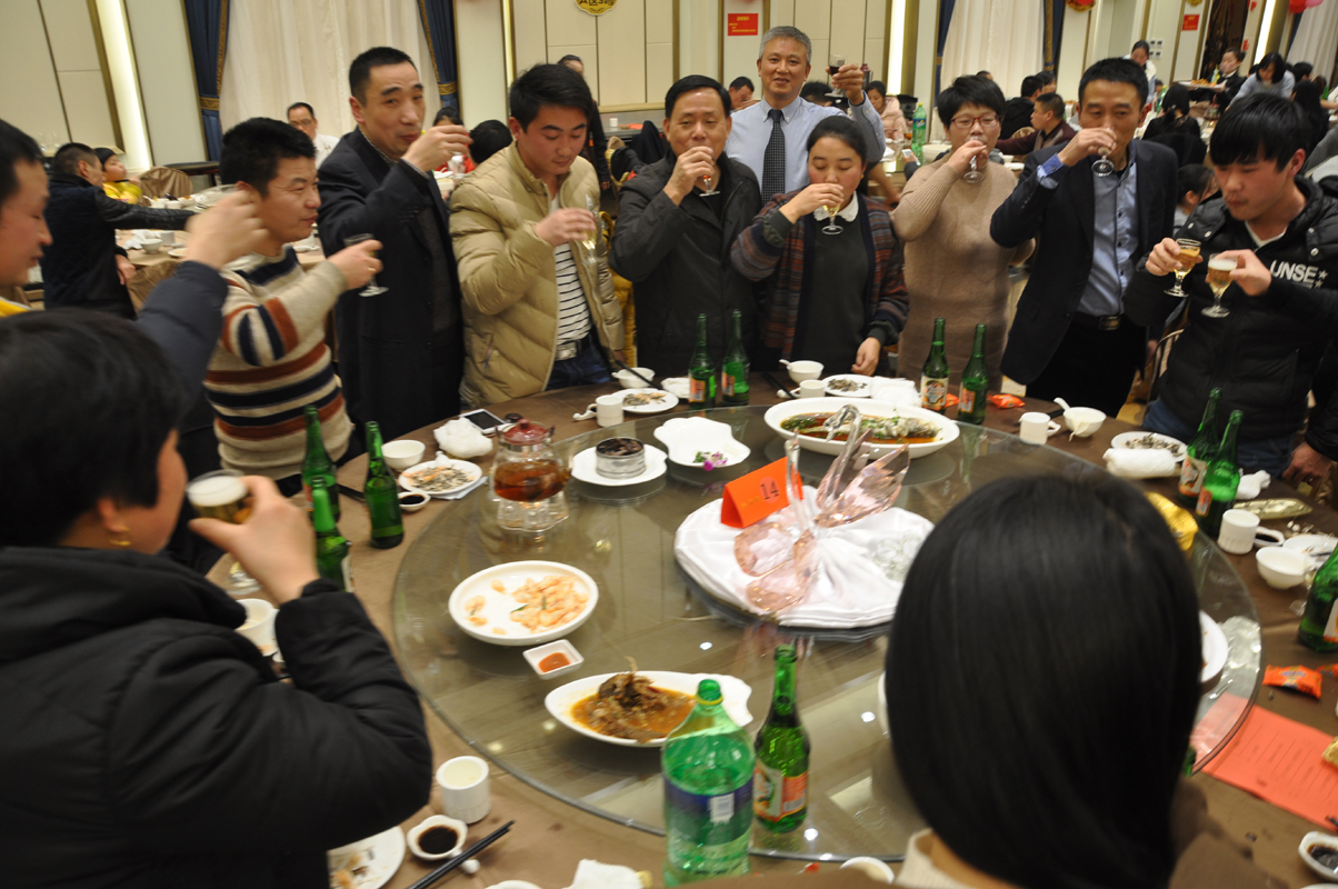 晚宴中領導給員工相互敬酒,祝福,感恩全體員工的支持與付出