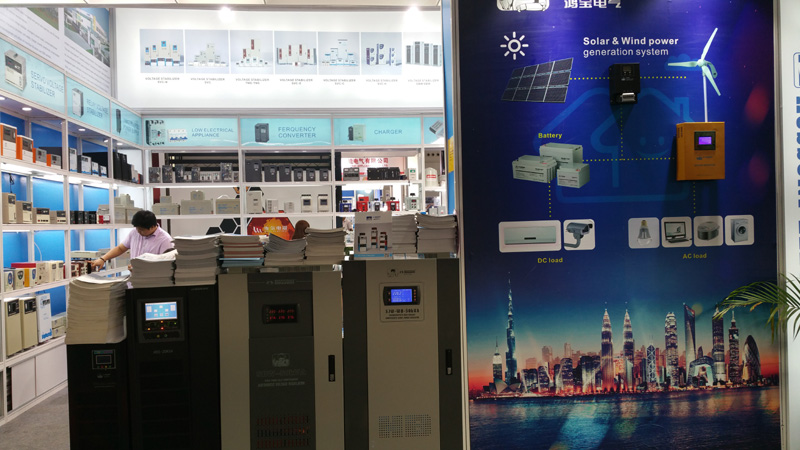 在展會上,鴻寶電氣集團公司展出了智能化穩壓器、太陽能控制器、離、并網逆變器、蓄電池、變頻器,低壓電器、燈具等30多個系列的產品。