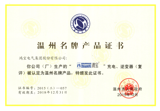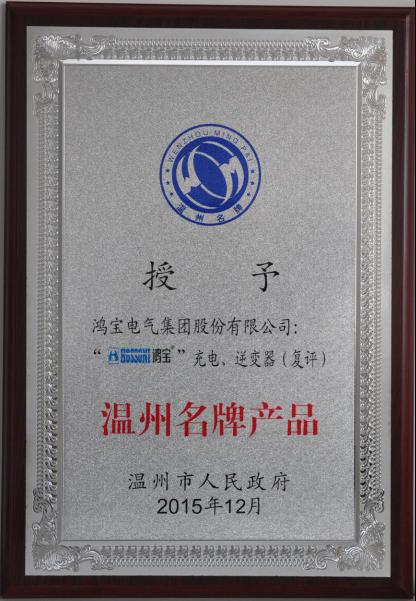 ”牌充電、逆變器(復(fù)評)被溫州市人民政府認(rèn)定為溫名牌產(chǎn)品。