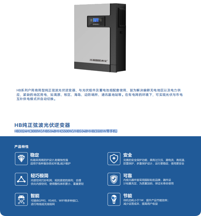 HB純正弦波光伏逆變器HB3024M(3000W)/(5500W)/(5500W帶手機)