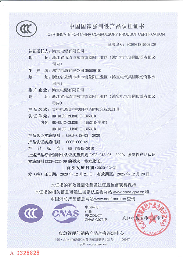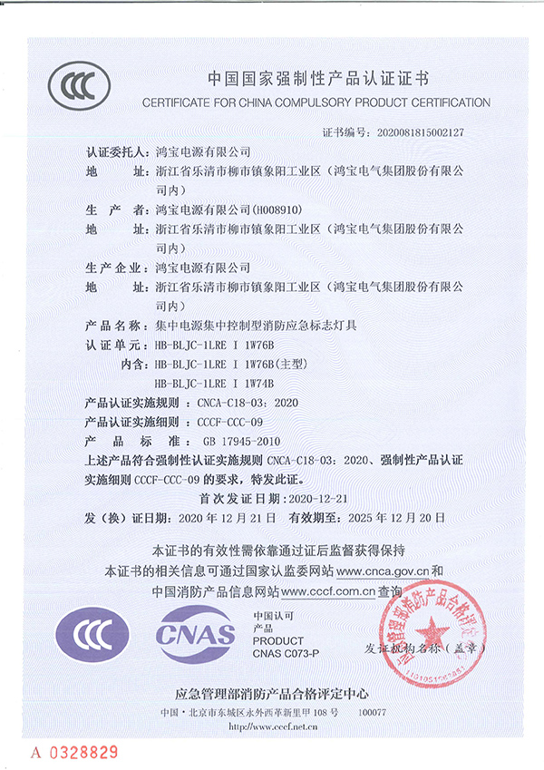 ● 滿足國家標準GB17945-2010 《消防應急照明和疏散指示系統》的要求;
