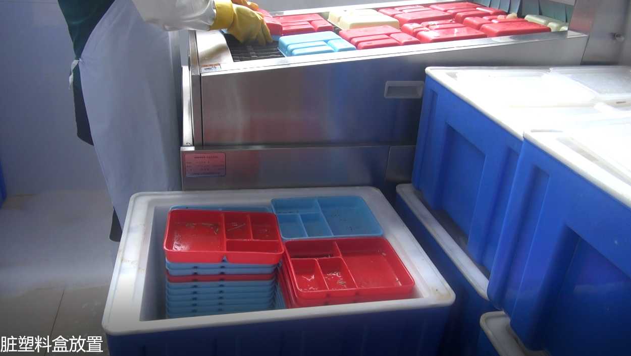 自動(dòng)洗碗機(jī)可對(duì)餐盒進(jìn)行集中清潔